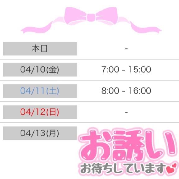 おはようーーえみです今日と明日7時~15時までいます土日は混むと思うので...