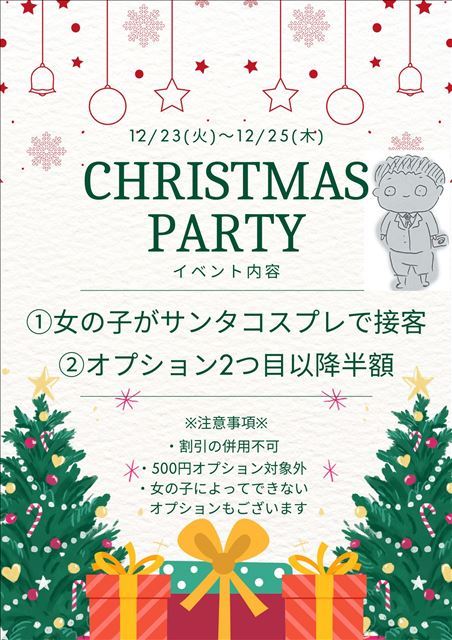 本指名さんがクリスマス仕様で来てくれてはっぴーな気分になった??ご予約とってもうれしい!ありがとう!オプションが二つ目以降半額になるので遊びに来てくれたら嬉しいです!イベントは今日と25日いるよ!なかよしさん見に来て~?女の子ページへ http://365diary.net/WTY5ZEZ6L3R0L2hhbmRfY2FtcHVzLzU2MDEyNzY2