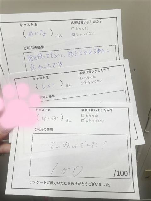 こんばんは!れいなです珍しい時間に、、ですが実はここ5日間くらい体調を崩してしまっていて急遽出勤を取り下げたり日記も書けなかったりでした体力には自信あるタイプなんだけど年4くらいで起こる扁桃炎今年1発目でしたいや~~本当にしぬかとおもった笑笑熱は常に40度くらいで喉は腫れて息はできずほんとーに走馬灯見えました今月頑張る~って意気込んだばかりなのにタイミング、、、、だいぶ良くなってきたので近々出勤できる日があれば出たいと思います一旦ご報告までにって感じの日記でしたがみんなも体調には気をつけてね???(写真は前回出勤した時のアンケートです)(こういうのがいちばん嬉しい)(みんなありがとうございます)(おやすみ)((?- -?)???)れいな女の子ページへ http://365diary.net/dkMyaENpL3R0L2hhbmRfY2FtcHVzLzU3ODEzNDU3