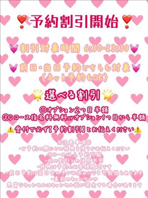 こんにちは!りえですご予約割引について頑張ってまとめたから見てほしい!笑前日予約がお得なのは前からですがなんと当日のご予約でもお得に!B~Cコースはオプション2個目から半額りえは舌が器用なので(?)乳首舐めとかディープキスがおすすめなによりおすすめなのがDコースのご予約指名料無料はもちろんお得ですがオプション1個目から半額??りえが一番好きなのがDコースにディープキスつけてもらうことなんだぁオールヌードでくっつきながらちゅーしたりぺろぺろ乳首なめあうのめちゃくちゃえっちじゃない!?お時間もコースの中で一番長いのでなかよしさんやたくさんいちゃいちゃしたいよって方ぜひご予約でお得にりえとえっちな時間過ごしましょうネット予約もOKだしお電話はこちらから03-3987-0450ご予約してお店に来たら【予約割引】って受付で言うの忘れずに!損してほしくないから圧強めに失礼します笑まってるよー?女の子ページへ http://365diary.net/a3RNRkpoL3R0L2hhbmRfY2FtcHVzLzU4NTM2MDU3