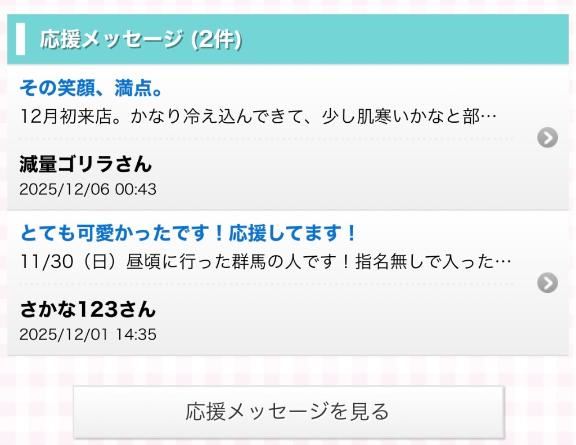はるですこんにちは雨と風、寒すぎるね~~~今日は短めで15時までいます!そう!遅れてごめんなさい、応援メッセージ書いてある~~!!うれしい!!です!!書いてくださったお兄さま、ちゃんと顔思い浮かびますよ(ここでドヤ顔)こうやって色んなひとの目に触れる応援や、お会いしたときに嬉しい言葉をいただけること、どれも嬉しいしがんばれます最近会ってないお兄さまも、いるからね、はやく会いたいよー!お待ちしてます女の子ページへ http://365diary.net/TG5vVmg4L3R0L2hhbmRfY2FtcHVzLzYyNzEyMTc4