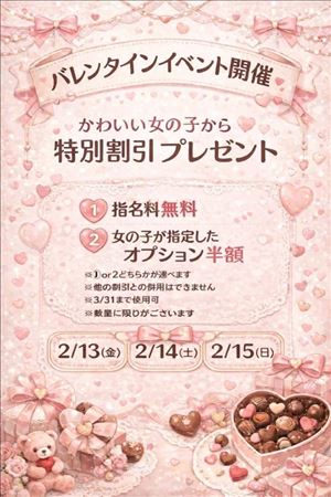 20:00~23:30?????????本日バレンタインイベント最終日ィー初日はチョコを持っていくの忘れたりチョコ持ったと思ったらタオル忘れたりてんやわんやでした??後半はタオルを持って準備完了したらスタッフさんが必ずチョコを持たせてくれるようになりまちた女の子みんな可愛いしスタッフさん優しいし働けて幸13またまたイベント中に遭遇?前回はサンタさん??今回こそはjk(?)で!!チョコ渡せて何よりだたよ急いで駆けつけてくれて差し入れまで!!ありがとう?推しだと言ってくれることがとてもとても嬉しい!!チケット使いに来てねん本日とお待ちしてます女の子ページへ http://365diary.net/WFBxZXpjL3R0L2hhbmRfY2FtcHVzLzYzMzY4MzI4