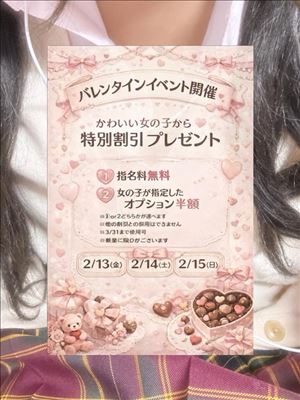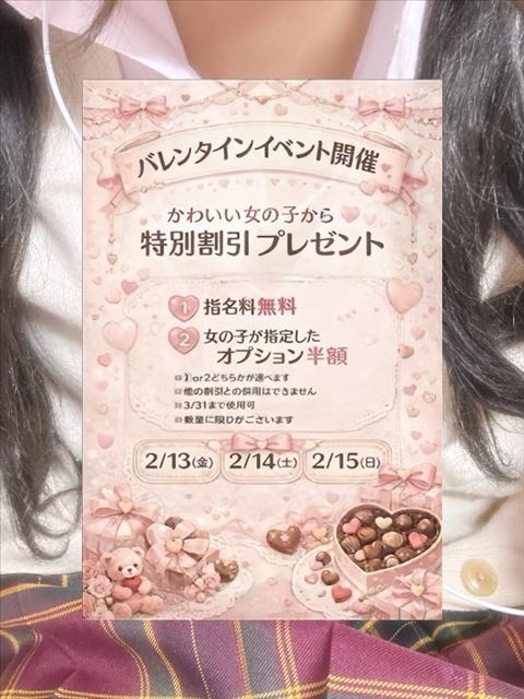 おはよう今日はバレンタイン前日だね今日からうれしい&お得なバレンタインイベントがスタート!今日からの三日間にきてくれたお兄さんたちには特典付き名刺をお渡しします-------内容-------指名料無料orおすすめオプション半額-----------------チョコ貰いにきてくれるのまってます(3/31まで使える割引だよ)女の子ページへ http://365diary.net/Q1pROTVzL3R0L2hhbmRfY2FtcHVzLzYzNjAwODE0
