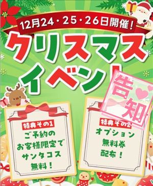 ???クリスマスイベントのご案内??3日間とも出勤します24日(水) 15:00-24:0025日(木) 7:00-17:0026日(金) 10:00-18:00既に事前予約できる日もあるので、ぜひご予約からお待ちしておりますちなみに26日は7:00~出勤することも可能なので、その時間しか来られないよってお兄さん先にオキニトークで連絡ください去年のサンタコスはこの後マイガール限定で載せちゃうねたくさんのお兄さんとクリスマスの時間過ごせますように?女の子ページへ http://365diary.net/M2FIUjRhL3R0L2hhbmRfY2FtcHVzLXNoaW5qdWt1LzUxNjkzMDY5