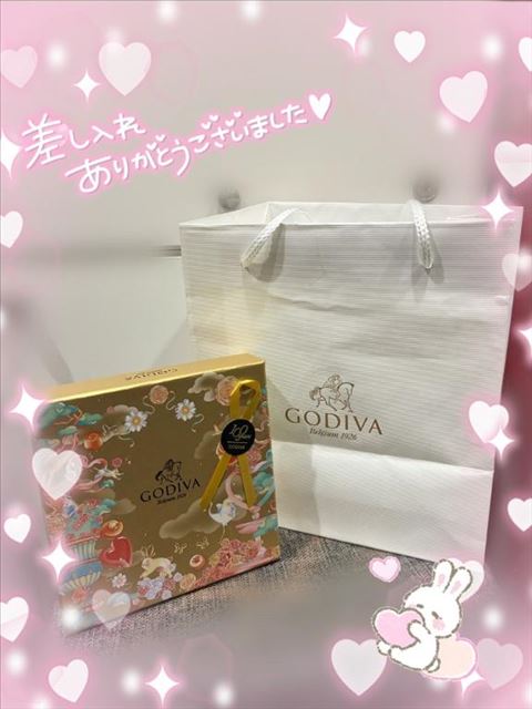 こんにちは、みさきです(?’?’? )??先日、とっても素敵な差し入れをいただきました??ホワイトデーのお返しでGODIVAのチョコレートをいただきました…!??見た目もすごく可愛くて、開ける前からワクワクしちゃいました(?????)ひとつひとつ大事に味わっていただいています??勿体なくて1個ずつ食べちゃう笑?こうして気持ちを込めて選んでくださったことが本当に嬉しくて…お兄さんの優しさに、すごくほっこりしました??いつも、私の時間を大事にしてくれてありがとう。これからも同じ時間を重ねていけたらなと思います!?改めて、素敵な差し入れ本当にありがとうございます(?’?’? )??またお会いできるの、楽しみにしています??みさき女の子ページへ http://365diary.net/c282UkhTL3R0L2hhbmRfY2FtcHVzLXNoaW5qdWt1LzU0NzQzNTYx