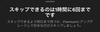 おはようございます先日、無料バージョンの音楽アプリの調子がおかしい事を ブログに書きましたがあれからもずっと、広告は多いままだけど、本来1時間に6回までしか出来ないはずのスキップが やり放題状態で、嬉しくて 1時間に20回以上とか調子に乗って、毎日スキップ しまくっていたら、突然 こんな表示が出た。正常に 戻ってしまったようですエーン9時から 出勤です!空いている お時間は、 14時~16時まで、です。当日の ご予約も、是非!お待ちしていますね本日も、どうぞよろしくお願い致します 女の子ページへ http://365diary.net/RVBES2JRL3R0L3N1aWthLzM1MzY4MDE0