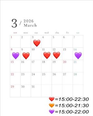 帰りはさすがに寒くなってるかもって不安でお店を出たけど案外寒くなくて安心昨日ぐらい暖かいかと思って薄着でスイカに来たのでハラハラしてました改めて今日会いに来てくれたご指名さんたち&初めましてさん、ありがとうございました出勤頻度バラバラだったりするんですがまたいつでも会いに来てくれたら嬉しいですいつでもお待ちしてますスタッフさんからちょっとだけ聞いたんだけど3月も素敵なイベントが開催されるみたいでホワイトデーイベントですねっわくわくするねっ3月上旬のスイカ出没予定はこんな感じです16日以降の予定はしばしお待ちをベースが15:00~ですが若干早い時間からの出没も可能だったりするのでオキニトークからお気軽にご相談くださいねご予約のお問い合わせ・ご相談もオキニトークから受付してますメッセージ待ってるね今月はあまり多くない出没だったけど、会いに来てくれたみなさんに大感謝3月もよろしくねのあ女の子ページへ http://365diary.net/UjFSSVZ5L3R0L3N1aWthLzM5MTk4MzA0
