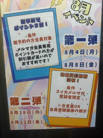 準備してスイカにむかいます?昨日の夜にズッキーニとシーチキンとトマトのサラダ作ったよ残りを食べて準備しよ本日は15-21時になりますご予約お誘いお待ちしてます(*^^*)8月イベント第一弾8/4(月)~8/8(金)ポイント2倍 ※ポイントカード2種類どちらでも対象条件:姫予約の方全員が対象 第二弾8/18(月)~8/22(金)指名料無料券配布条件:メルマガの合言葉もしくは登録画面の提示※毎週木曜日に合言葉配信中8月シフト 6日(水)15:00-21:00 8日(金)13:00-19:00 10日(日)15:00-21:00 12日(火)17:30-22:00 13日(水)15:00-21:00 14日(木)14:00-20:00 20日(水)15:00-21:00 21日(木)15:00-21:00 22日(金)11:00-17:00 27日(水)15:00-21:00 28日(木)15:00-21:00 29日(金)14:00-20:00 31日(日)12:00-18:00追加、変更はわかり次第upします。女の子ページへ http://365diary.net/ZzV4QjNkL3R0L3N1aWthLzM4NzkzMjM1