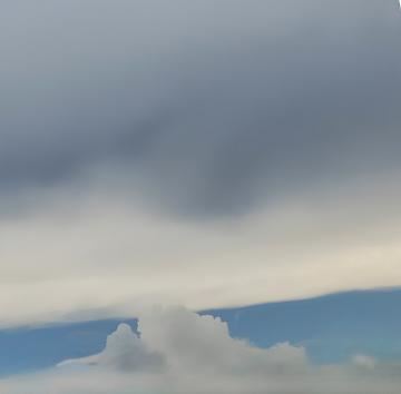 みなさまこんばんは写真は昨日のものです。すこし見えづらいのですが雲と空の境がまっすぐです。見えますか地平線が天にあります。天平線です勝手な言葉をつくりましたとてもふしぎな天気だなとかんじました。まっすぐな雲のすぐ下にはモクモクな雲がありました。雨がふりそうな雲と夏の雲が一緒にいてケンカをしないでほしいなとおもいました。なかよしがいいです女の子ページへ http://365diary.net/WFlJN05kL3R0L3N1aWthLzM4NzUxMDgy