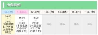 みなさまこんばんは今月もシティヘブンのオキニトークというメッセージ機能を使用したイベントを開催しておりますご希望日の2日前までにオキニトークからご予約をしていただくと60分コース以上で指名料金が無料です。お店のご利用がはじめての方はさらに割引がありますただいま2月12日月曜日以降のご予約を受けつけております。もし12日のご予定にかんがえてくださっている方がいらっしゃいましたら2日前の本日10日土曜日までにオキニトークへメッセージをおねがいいたします。もしもしも可能でしたらご予約希望でメッセージを送ってくださる際メッセージの最初に[予約希望][予約したい]など書いていただけるととてもうれしいです。[?]お店スイカの絵文字を押していただくだけでもありがたいです。ご協力いただけたうれしいです。わがままをすみません。よろしくおねがいします。ご希望日の2日前よりもさらに早い日にメッセージを送っていただくことも可能ですぜひシティヘブンへの会員登録とマイガール登録のご検討をおねがいします。 直近7日間の出勤予定15日木曜日はお休みをいただきます。女の子ページへ http://365diary.net/bnVhdHdOL3R0L3N1aWthLzM4NzUxMDgy