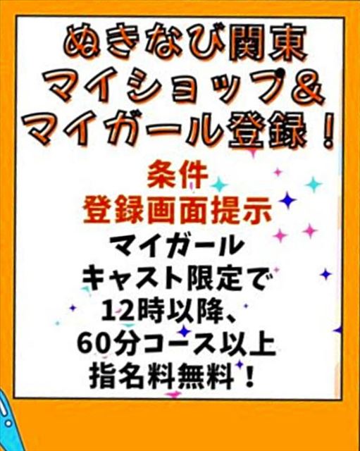 みなさまこんにちは来月 9月は期間限定の割引イベントを2つ開催いたします第二弾はぬきなび関東というサイトを使用した割引イベントですぬきなび関東でお店スイカをマイショップ登録そしてスイカのおんなのこさんをマイガール登録していただくと60分コース以上のご利用でマイガールのおんなのこさんの指名料金が無料ですぬきなび関東ではキープボタンを押していただくことでマイショップ登録マイガール登録をすることができます。マイショップ登録マイガール登録キープ 一覧が見えるように画面を受付でご提示くださいませ。このイベントは9月16日 火曜日から19日 金曜日までの4日間限定です。 クララの場合こちらのイベント期間中はお休みをいただくので参加することができません。申し訳ありません。どうかお許しください。もしこの4日間の中でみなさまのタイミングがあいましたらぜひご利用をしていただけたらと思います。そしてぬきなび関東への会員登録のご検討をよろしくおねがいします。女の子ページへ http://365diary.net/Q2tVWWp6L3R0L3N1aWthLzU1MTQzNDY0
