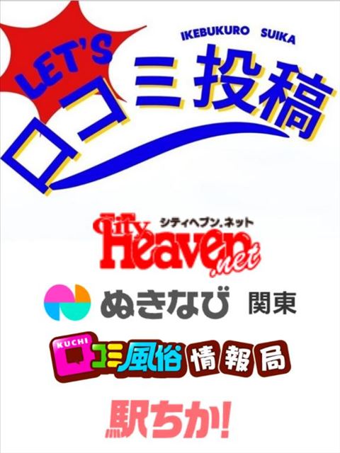 みなさまおはようございますお店スイカでは現在4つのサイトでクチコミ割引を実施しております■ぬきなび関東9月30日までにクチコミを書いてくださっていた方はおんなのこさんの限定で60分コース以上をご利用で一律2000円割引です。10月1日以降にクチコミを書いてくださった方は指名料金無料へ変更させていただきました。クチコミ割引をご利用の際はぬきなび関東のマイページにあるクチコミを投稿してくださった画面を受付でご提示ください。■シティヘブン■口コミ情報局■駅 ちか!書いてくださったクチコミのおんなのこさん限定で指名料金が無料です。クチコミ投稿画面やクチコミ投稿後にお店から送られてくる割引コードを受付でご提示ください。ぜひご利用くださいませ。どのクチコミ割引も使用期限は投稿日から2か月以内です。もしご自身の記憶にのこったことお店やおんなのこさんに直接つたえることができなかったお言葉などがありましたらクチコミにお書きくださいよろしければ各サイトへの会員登録のご検討をおねがいします。女の子ページへ http://365diary.net/WmlVeFA5L3R0L3N1aWthLzU1MTQzNDY0