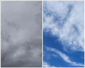 みなさまこんにちは載せさせていただいている写真は今日と昨日の天気です。左の写真が先ほど今日撮影したもの右が昨日です昨日と今日ビフォー・アフターくもりと晴れおなじ天でも一日での変化がおおきいですね。違いがあるからきっとワクワクがうまれるのですねお店スイカはどのような変化があるのでしょうかじぶんはワクワクとすこし緊張しています本日から20日 火曜日までお店スイカは臨時休業しております。女の子ページへ http://365diary.net/Wnd1Z0NwL3R0L3N1aWthLzU1MTQzNDY0