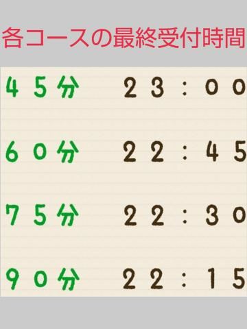 本日ご案内できる最後の時間帯がちかづいてきております。今日がおわる前によろしければお越しくださいませ。22時50分以降ぜひお店へ電話をしてみてください。ご指名していただけるとうれしいです。よろしくおねがいします。各コースの最終受付時間女の子ページへ http://365diary.net/NWl4UGdJL3R0L3N1aWthLzU1MTQzNDY0