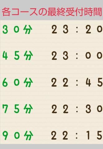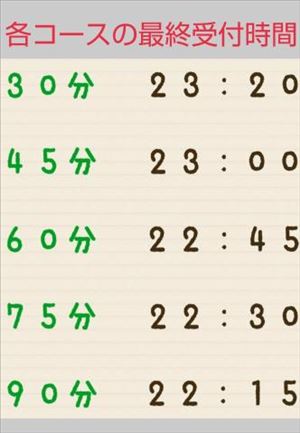 本日ご案内できる最後の時間帯がちかづいてきております。22時15分以降今日がおわる前によろしければお越しくださいませ。ぜひお店へ電話をしてみてください。ご指名していただけるとうれしいです。各コースの最終受付時間女の子ページへ http://365diary.net/WG1IemY3L3R0L3N1aWthLzU1MTQzNDY0