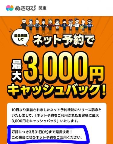 みなさまおはようございます10時からぬきなび関東というサイトから一週間先のWeb予約受付がはじまります10時から22時までが受付時間です。プロフィールページへWeb予約ボタンが表示されているおんなのこさんはWeb予約をすることができます。条件の変更より当日と前日のWeb予約は終了しました。今日は13日 火曜日から17日 土曜日までのご予約をご案内中です45分コース以上からご利用できます。Webで予約が可能な時間帯は8時に はじまるコース時間から23時に終了するコース時間までです。クララは15日 木曜日17日 土曜日に出勤させていただく予定です。お早めにご予定がわかる方はぜひWeb予約をご利用していただけたらと思います。ぬきなびキャッシュバックの期間が3月31日まで延長になりましたWeb予約をしてクチコミを書いていただくと3000円がキャッシュバックされますぜひご利用くださいませ。キャッシュバックについてhttps://sp.suika-g.net/suika/girl/1253/blog/2086057.htmlぬきなび関東への会員登録のご検討をおねがいします。クララはシティヘブンのオキニトークでも予約を受付していますこちらでは一週間以上前からの未来の予約も可能です。よろしければメッセージをお送りください。女の子ページへ http://365diary.net/R2pGQ2JiL3R0L3N1aWthLzU1MTQzNDY0