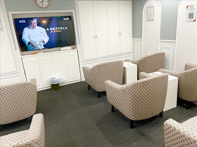 そして同じ階に、お客様達の大きな広々とした待合室があります。席は全部で10席。