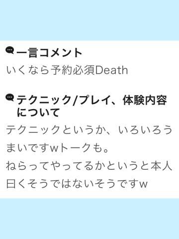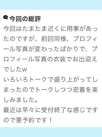 クチコミありがとうございます!(´▽`)peko24さんへ!クチコミのお礼が大変遅くなりすみません(-人-)ほんとにいつも気にかけてくれてありがとうございます!「いくなら予約必須Death」ってタイトルに思わず笑っちゃいましたwデスって笑僕が好む言い回しよく知ってますねww盛ってないのに「プロフィール通り」って…今度はもう少し盛ったパネルにします(白目)なぜ衣装チェンジ直後だったかってそれはあなたが来るタイミングでパネル変えてるからですよ…(¬_¬ )お付き合いが長くなるとトークや密着がおざなりになってしまったり(ごめんね汗)たまに照れちゃう事もありますがこれからも末永くよろしくお願いします(´▽`)夏休み明けにお約束を頂いてるのでその日を楽しみに…もう少し夏休みに浸っていますね☆彡のん7月度、お店内の総合ランキング1位を初めて頂きました!大変恐縮ですが…「おめでとう~!」クチコミを頂けますと、、、とても励みになります(*・ω・)*_ _)ペコリ書いてくれたら惚れ直します|ω・)チラ▼前日と当日のご予約は…03-3985-4126▼前々日までのご予約は下記URLをご参照くださいhttps://x.gd/MQEvU女の子ページへ http://365diary.net/Mzc5RnJFL3R0L3N1aWthLzQ0ODkwNDYz