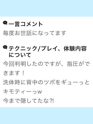 クチコミありがとうございます!(´▽`)peko24さんへ!クチコミのお礼が大変遅くなりすみません(-人-)ほんとに毎度ありがとうございます!ついに…隠しスキルの「指圧」がバレましたねwツボをつくが効果バツグンでしたかwww今回はTシャツにビリビリショーパンコーデ!実はコーデ考えるのも密かな楽しみなのだがそれは自分自身が飽き性であるからです。そんな性格が良い方に傾いてよかった。しかしほんと、よく人の細かいネタまで覚えてますね。爆笑しました( *´艸`)「安心して卒業できる」なんて言ってもらえるのは光栄ですが…まだまだ卒業させませんよ!笑ではまた夏休み明けに!フフフ(´^∀^`)フフフ…のん7月度、お店内の総合ランキング1位を初めて頂きました!大変恐縮ですが…「おめでとう~!」クチコミを頂けますと、、、とても励みになります(*・ω・)*_ _)ペコリ書いてくれたら惚れ直します|ω・)チラ▼前日と当日のご予約は…03-3985-4126▼前々日までのご予約は下記URLをご参照くださいhttps://x.gd/MQEvU女の子ページへ http://365diary.net/TjhLWFpJL3R0L3N1aWthLzQ0ODkwNDYz
