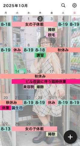 10月・11月・12月の暫定シフトです(*・ω・)*_ _)ペコリ ☆10月7日(火)、24日(金)は、リクエスト出勤可能です。 ☆10月10日(金)~21日(火)は、 同人誌の即売会及び推しアニメの関連イベントの兼ね合いで 東京にいません(-人-) ごめんなさいm(._.)m10月のシフト11月のシフト12月のシフト▼前日と当日のご予約は、お店まで03-3985-4126▼前々日までのご予約は下記URLをご参照のうえ、ご相談くださいhttps://x.gd/MQEvU女の子ページへ http://365diary.net/MjN2ZnRKL3R0L3N1aWthLzQ0ODkwNDYz