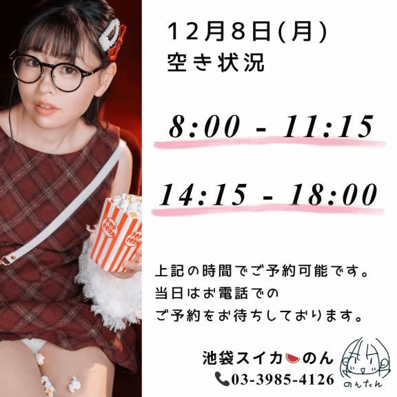 12/8(月) の空き状況をお知らせします☆・8 : 00 ~ 11 : 15・14 : 15 ~ 18 : 00---▼電話予約03-3985-4126---▼ネット予約https://x.gd/2D7f1---▼初見も古参も改めてご一読、お願いします(*・ω・)*_ _)https://x.gd/fS1pn---?【ページのひらき方】① URLを長押し② コピー③ Safari / Chromeを開いて貼り付けこれで見れます!女の子ページへ http://365diary.net/TjdNMDNaL3R0L3N1aWthLzQ0ODkwNDYz