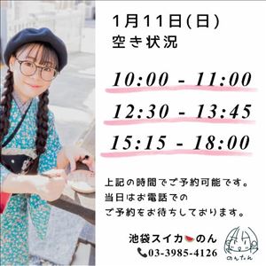 1/11(日) の空き状況をお知らせします☆・10 : 00 ~ 11 : 00・12 : 30 ~ 13 : 45・15 : 15 ~ 18 : 00---▼電話予約(営業時間内のみ)03-3985-4126---▼ネット予約(24時間受付中)https://x.gd/2D7f1---▼初見も古参も改めてご予約の際にご一読、お願いします(*・ω・)*_ _)https://x.gd/fS1pn---?【ページのひらき方】① URLを長押し② コピー③ Safari / Chromeを開いて貼り付けこれで見れます!【らいんの友達検索】@nontan で検索?女の子ページへ http://365diary.net/aG42cWppL3R0L3N1aWthLzQ0ODkwNDYz
