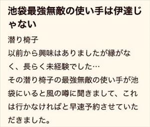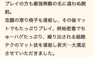 クチコミありがとうございます!(´▽`)今日のやまさんへ!会いに来てくれて感謝です!風の噂で名前を聞いて…というくだりがもう嬉しすぎましたww潜り椅子初体験の任務を任せてもらえて光栄です…!写メ日記そのままと言ってもらえて一安心。声フェチさんに刺さったのも素直に嬉しかったです( *´艸`)そして…リクエストの裸 -ふんどし-自分で言うのもなんですがちくポロもおしりに食い込むねじねじもなかなかのインパクトでしたよね…初対面ですごいもん見せてほんとにすみません…恥潜り椅子からマっトまでの王道の洗い場と密着・ちゅーハグ多めでしっかり楽しんでもらえてよかったです!一緒に楽しむのが一番なのであんまり受けに徹する! とか考えなくて大丈夫ですよん(*´▽`*)75分があっという間だったと言ってもらえてほんとうに感謝。ぜひまた風活しに池袋に来てくださいね!ゆっくりまったり遊びましょう(´▽`)次回お会いできる時間を楽しみにしています。のん---▼電話予約(営業時間内のみ)03-3985-4126---▼ネット予約(24時間受付中)https://x.gd/2D7f1---▼初見も古参も改めてご予約の際にご一読、お願いします(*・ω・)*_ _)https://x.gd/fS1pn---【ページのひらき方】① URLを長押し② コピー③ Safari / Chromeを開いて貼り付けこれで見れます!【らいんの友達検索】@nontan で検索女の子ページへ http://365diary.net/SEhyamp5L3R0L3N1aWthLzQ0ODkwNDYz