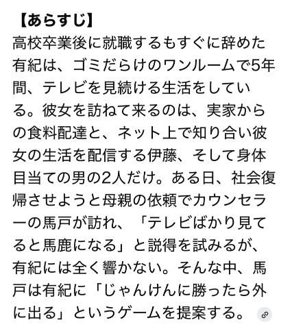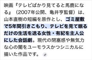 絶対クチコミ書かない宣言してる方からのお便りで腰抜かしてます。ぬぬぬめぬぬさんへ!クチコミありがとうございます!(´▽`)まぁ、まさにこれっすね。--------以下引用--------映画『テレビばかり見てると馬鹿になる』(2007年公開、亀井亨監督)は、山本直樹の短編を原作とし、ゴミ屋敷化したワンルームで5年間引きこもり、テレビを見て眠るだけの生活を送る女性・有紀の退廃的な日常を描く物語。配信者の男やカウンセラーとの閉じた関係性を通じ、現代人の心の闇をユーモラスかつシニカルに描いた作品です。?----------------絶対にクチコミ書かない宣言の人の心を動かせたなら幸いです。のん---▼電話予約(営業時間内のみ)03-3985-4126---▼ネット予約(24時間受付中)https://x.gd/2D7f1---▼初見も古参も改めてご予約の際にご一読、お願いします(*・ω・)*_ _)https://x.gd/fS1pn---【ページのひらき方】① URLを長押し② コピー③ Safari / Chromeを開いて貼り付けこれで見れます!【らいんの友達検索】@nontan で検索女の子ページへ http://365diary.net/S3pzbzB5L3R0L3N1aWthLzQ0ODkwNDYz