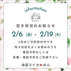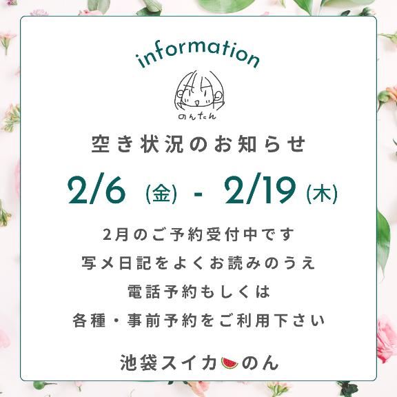 2/6(金) ~ 2/19(木) のスケジュールをまとめました!シフトと空き状況、バレンタインイベント、長期休暇のお知らせなどなどてんこ盛りでお伝えします☆▼シフト▼空き状況▼バレンタインイベ2/12(木) ~ 2/14(土)の3日間バレンタインイベがあります!ヘブンorぬきなびのWeb予約で【指名料無料券】をお渡しします。予約の締め切り2/12(木)の予約→2/10(火)夜まで2/13(金)の予約→2/11(水)夜まで2/14(土)の予約→2/12(木)夜まで▼長期休暇のお知らせ2/17(火) ~ 2/24(火)までの長期休暇を頂きます(すまぬ)。---のんたんと直接やりとりして予約してくれた方限定---以下の着衣マっトが特典!!各メッセージツールか【のんびり屋】を使って予約してくれたら…白紺マイクロビキニ、体操着、スク水での 着衣マっト がオーダー出来ます!ご予約の際にどの予約特典が希望かのコメントを添えてくださいm(_ _)mご予約・お問い合わせお待ちしております(*・ω・)*_ _)ペコリ---▼電話予約(営業時間内のみ)03-3985-4126---▼ネット予約(24時間受付中)https://x.gd/2D7f1---▼初見も古参も改めてご予約の際に下記ホームページをご一読、お願いします(*・ω・)*_ _)https://x.gd/fS1pn---【ホームページのひらき方】① URLを長押し② コピー③ Safari / Chromeを開いて貼り付けこれで見れます!【らいんの友達検索】@nontan で検索女の子ページへ http://365diary.net/OEtlY3MxL3R0L3N1aWthLzQ0ODkwNDYz