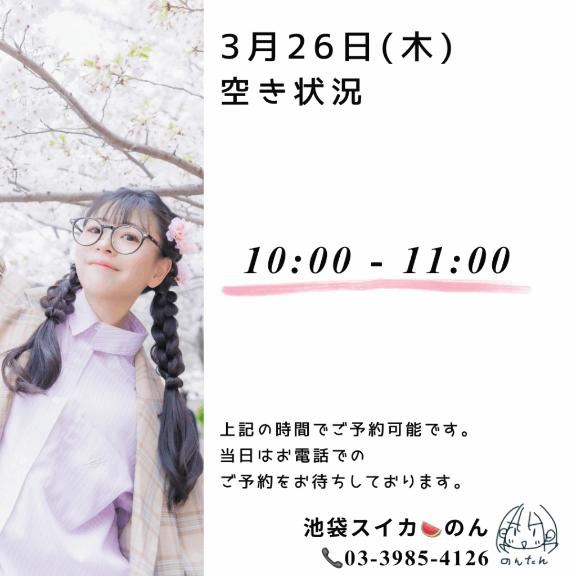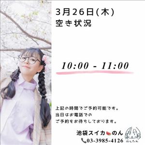 3/26(木) の空き状況をお知らせします☆?・10:00 ~ 11:00本日もよろしくお願いしまする~。女の子ページへ http://365diary.net/QUZLVktML3R0L3N1aWthLzQ0ODkwNDYz