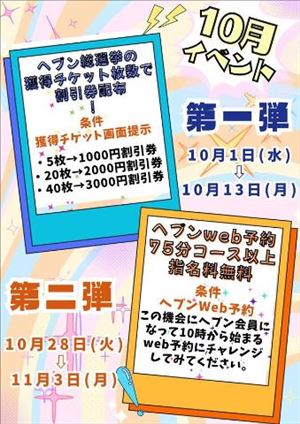 こんにちは~!ねねです先日なんと、右目の瞼が蚊に刺されるという人生初めての出来事を経験しました蚊って夏に出てくるイメージでしたが、ここ数年は秋に出没する事が増えてきましたよね…皆さんも思わぬ所に刺されないように気を付けてください今日も16:00~22:00までお店にいるので、ご予約お待ちしてますね10月のイベント第2弾が開催中です!とてもお得なイベントなのでぜひぜひ~!!女の子ページへ http://365diary.net/bENkVUZKL3R0L3N1aWthLzQ3MDkxMzUy