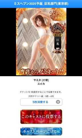 ???ミスヘブン地方予選投票開始したよ??投票期間:10/28-11/3?既に投票してくれたおにいさま達ありがとう?何票入ってるかわかるので実際投票してくれたんだなってわかって嬉しい???今日から11/3の間やえかにみたよをしてくれると更に投票するチケットがもらえるみたいなのでやってみてね???投票はやえのシティヘブンの名前下らへんに投票するというボタンがあるのでそこから投資待ってます??投票ボタンを押すとこのページが出てくるのでチケットの消費する枚数を選んでこのキャストに投票するを押したら投票完了になります?投票するにはSMS認証なども必要なのでシティヘブンに登録してね?ミスヘブン地方予選のお祭り楽しもうね?やえか女の子ページへ http://365diary.net/dGppWUlEL3R0L3N1aWthLzU3MjQxMTc5