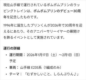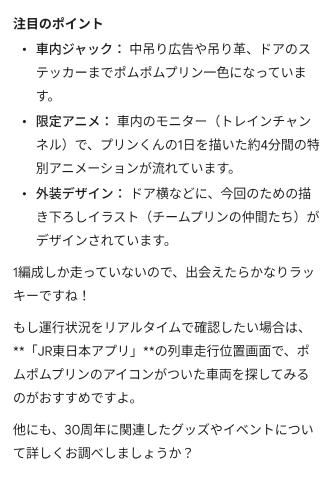 昨日の帰りに電車まちしていたらポムポムプリンくんの電車が!!今更ながらなぜ写真撮らなかった、、私のばかー!!自分が乗る電車がちょうど来ていて写真撮るの忘れてました、、チラッとしか見えなかったけど中もプリンくんデコレーションですごく可愛かったです!何記念なんだろと思いましていでよ!ジェミニさん!とのこと!!乗れはしなかったけどなかなかにレアな電車みれて嬉しかったです!プリンくん好きなお兄様何人かお会いしたことあるので乗れたら写真見せてくださいね!懐かしの自作プリンくんを添えて!女の子ページへ http://365diary.net/SlNza01HL3R0L3N1aWthLzYzODAyMDkw