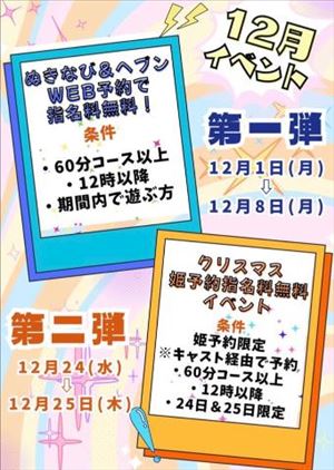??今年のクリスマスの予定は?????なんかイベントやるみたいで24と25姫予約限定で12:00以降は指名料無料になるらしい????私は25が出れないので(出れても8-11とかなので?)もし24希望の人いたら連絡ください??24は8-13か8-14出れます!よろしくね~!?女の子ページへ http://365diary.net/cTJKWUNvL3R0L3N1aWthLzYyNDY3Mzc1