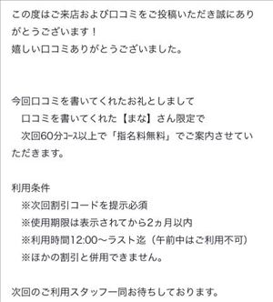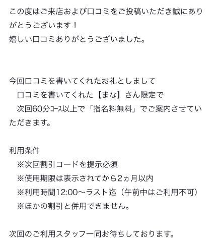 ??前のお店と違って口コミ特典何もないと思ってたら2ヶ月間は使えるみたいよ!????12時以降で60分以上だと指名料無料になるっぽい???某新宿店の頃はお店で2番目か3番目に口コミ多かったからな~!笑自分から書いて!とは言わないので全然強制とかじゃないけど?次回1000円でも安く遊びたい人は書いたほういいかな??女の子ページへ http://365diary.net/Z2lXdDdwL3R0L3N1aWthLzYyNDY3Mzc1