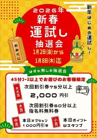 おはよう( ????? )??今日もこの後8時から出勤するよまだまだ寒い日が続くけどあったか~いお部屋であちあちなエチ活しちゃお???ぬるぬるマ〇トの上で身も心も溶かしちゃいます?お題:おせちって食べてる?に回答♪もう何年も食べてないなぁ?全部でも一部でも作る人は本当に尊敬する???????????????????????????謹賀新年!新春☆運試し抽選会開催?新年最初の運試し!2026年のスタートを祝して、ハズレなしの豪華抽選会を開催いたします?? 開催期間1/2(金) ~ 1/8(木)? 参加条件45分コース以上でご利用のお客様限定気になる抽選内容は…はずれ無し!!大大吉~小吉の4枚のおみくじカードを引いていただき、該当の割引を適用!?大大吉次回75分以上で2,000円引き?大吉次回60分以上で指名無料?中吉本日 オプション1000円引き?小吉本日 ポイント2倍女の子ページへ http://365diary.net/SUlkTXV4L3R0L3N1aWthLzYyOTA0NDQy