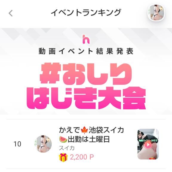某ヒメチャ◯ネルのイベントしかも「お尻はじき」という謎コンセプトのイベントで皆様のおかげで10位に入ることが出来ました皆様いつも応援ありがとうございますみんな本当に温かいのよね本当に本当にありがとうこれからもイベントにはバシバシ出ていくつもりなのでログボで全然嬉しいのでよかったら応援して下さいませヒメチャ◯ネルって何?美味しの?って方はコチラから辿れますのでよかったら見てみてね↓https://lit.link/kaede0107suika?女の子ページへ http://365diary.net/b1FaNEMwL3R0L3N1aWthLzI4Nzc2MTg5