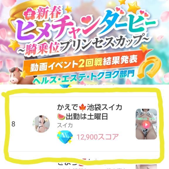 こにゃにゃちわ~アチラ界隈のイベント!なんと8位にランクイン出来ました皆さまの日々の愛のかたまりです!日々かえでの事を忘れないでログボや推しうちわで応援してくれて本当に本当にありがとうとても嬉しいですこれからも疲れない程度に応援してもらえたら嬉しいです(新しい今日からのも出てます)疲れたら自己判断で休んでくださいね無理せず楽しめる程度に一緒に頑張っていきましょーねさてさて、明日はまだまだご予約絶賛受付中でございます14:15~20:00ムチムチボディを堪能したい方、日々の疲れを本格マッサージで癒したい方、優しくでもねっとりと責められたい方、当てはまったら是非是非お店にお問い合わせをお願い致します貴方からのお問い合わせをお待ちしておりまする~女の子ページへ http://365diary.net/VkV3NUk3L3R0L3N1aWthLzI4Nzc2MTg5