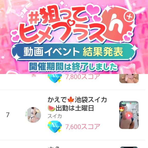 アチラ界隈の事です!ヒメチャ◯ネルの狙ってヒメプラスというイベント!こちら終了し7位に健闘しました皆さまのたくさんの愛のおかげです!最初2位だったから浮かれてたら気づけば真っ逆さまに落ちてデザイアって感じでしたが、7位も充分大健闘本当にありがとうございました今後も出られるイベントは出ていくつもりなので疲れない程度に応援してもらえると嬉しいです!コレ大事!なんでも心が疲れたら良くないからね無理せず楽しめる程度に一緒に楽しんでいきましょーこれからもよろしくね女の子ページへ http://365diary.net/Rm1UeHRiL3R0L3N1aWthLzI4Nzc2MTg5