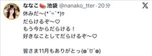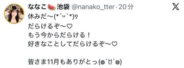皆さま今日も沢山のご予約ありがとうございました ぬるぬる滑り尽くしました楽しかったー!心地よい脱力感と多幸感でございます   ということで日曜日はお休みっななこの11月が終わりました~ 皆さまのおかげで気持ちよくお休みに入れます 11月もありがとう!なんと言っても『ミス.ヘブン』イベントで色んな周りの人に感謝した月でした 周り人々や環境に恵まれているのは本当にありがたいことです 最近つんつくね、いつまでもいられるものではないぞ~とね、思っているんですよだからね、楽しめるうちはそれはもう めいいっぱい楽しんでイこうと思ってます 1ぬるぬる1感謝の正拳突きの気持ちでいますのでよろしくお願いいたします  とあっ👊   【WEB予約リニューアル】ご予約ご希望日の1週間前から2日前までご予約がお取りできるようになりました🎉前日、当日は不可となります ご予約操作 可能時間帯ぬ.き.な.び 10:00~22:00シティ.ヘブン 12:00~22:00 よろしくお願い致します 12/1~12/8WEB予約でご来店された方 ご指名料無料12時以降 60分コース以上   https://lit.link/nanako75suika月間スケジュール、各種SNSやサイトはこちらから姫予約は『ヘブンのトーク』『XのDM』『LINE』でお受けしています