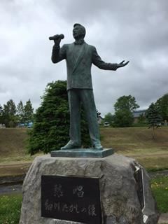 真狩村に真狩村出身の細川たかし像があります!