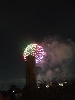 いざ花火が始まったらあげる場所が思ってたよりズレていてなんと、この杭が邪魔~~!!邪魔邪魔!ま、参ったなぁ(ーー;)せっかく結構前に到着して待機してたのに。。。(ビール飲みながら)まぁ、コレもいい思い出かな。iPhoneから送信
