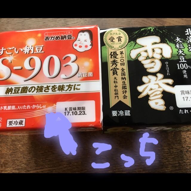 今回はコレでーす( ^ω^ )いつも食べているおかめ納豆のすごい納豆 Sー903納豆菌こっちの方が身体に良さそうですね~!さて、お味は?!と言うとタレがシールド乳酸菌100億個が入っているというもの。お~。100億個!トロミがかったタレですね。うん、いつもの納豆のタレのが美味しい。あんまり好きではない。マズくはないけど普通のヤツのが美味しいなぁ~~。味がそんなに変わらなかったらコッチのが身体に良さそうだからコレにしようと思ったけど~。残念~。iPhoneから送信