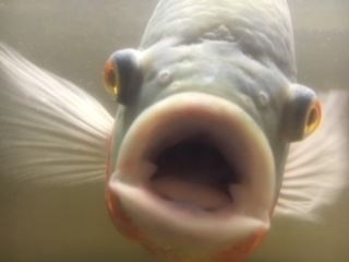 コイツ、オスカっていうお魚らしいんだけど横からみたら鯛に似てるんだけどめっちゃ気性が荒くて自分よりちっちゃいアロワナ追っかけ回してるし、サンゴをド突いてるし、この顔ですっとコッチみてるしぜーーーんぜんまーーったく可愛くない。焼いて食ってやろうか(笑)iPhoneから送信