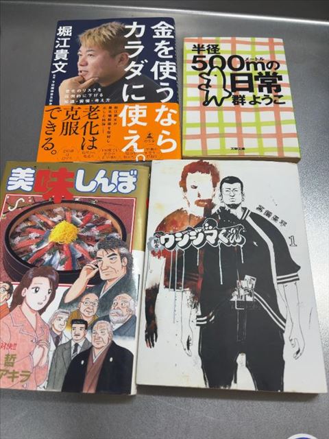 この前、ブックオフに服を売りに行った時に本を買いました~ちょっとジャンルが様々ですけど美味しんぼが好きなんですよちょこちょこと集めていますあとウシジマ君は社会勉強になりそうだったので買ってみました群ようこさんのエッセイは面白くて読みやすいので寝る前にぴったりそして健康本なのになぜかホリエモンの本をチョイス内容がすっと入ってくるんじゃないかなぁと思ってねいつ読むのやら 笑女の子ページへ http://365diary.net/OWlkbmN5L3R0L3N1aWthLzI4Nzc2MTg0