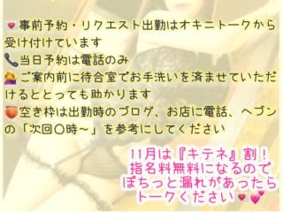 おはようございますオフトゥンから出られない…本日9:00-14:30ですスタート枠75分コースと、は11:45~14:30が空いています朝7:00頃までならオキニトークからの予約も可能ですもしくは朝8:00から始まる電話予約をご利用くださいお部屋が埋まると逢えません早めに予約をお願いします☆キテネ割は午後から使えます13(月) 18:45~22:30そのあと5日間お休みです。13日の事前予約もオキニトークから受け付けています。週末早番は最終週が出れないのと23(木・祝)はご予約満了のため、今日・19(日)と早番えみり隊の方お待ちしてますね本日もよろしくお願いしますえみり 女の子ページへ http://365diary.net/SXZCSmpwL3R0L3N1aWthLzI4Nzc2MjIw