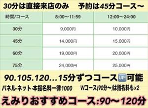 ??現在18時頃までお部屋埋まっております…!!たくさんのご予約、ご来店ありがとうございます次回、空 19:40頃~ご案内可能です。お近くにいる場合も電話一本お願いします。スムーズなご案内、そしてわたしも準備万端で待ってられるので助かります。直接来店して指名しても指名料は変わりません。◎おすすめコース 90分コース◎迷ったら私を信じなさい…!☆ご案内前に待合室にてお手洗いをお済ませ下さい☆予約時間より遅れる場合は必ず電話をお願いします☆30分コースのご予約はオ〇ニトークからのみ受付ています(接客中は返せないので当日出勤時間前までにご予約ください)先のご予約・リクエストもお待ちしてます☆電話予約前日 8:30~/当日 8:00~.☆オ〇ニトーク(姫予約)※一番嬉しいです?当日 出勤時間前までにトークへ基本的に前日までにお願いします.☆ヘ〇ンネット予約1週間前~前々日まで 12:00~22:00.☆ぬ〇なびネット予約1週間前~前々日まで 10:00~22:00キャッシュバックは1/15までネット予約は店舗スタッフとチャットでやり取りがある為、返信のできる状態でお待ちください。予約の無断キャンセルはもう予約を受けれません。連絡を必ずお願いします。えみり女の子ページへ http://365diary.net/ZXhHVmRyL3R0L3N1aWthLzI4Nzc2MjIw
