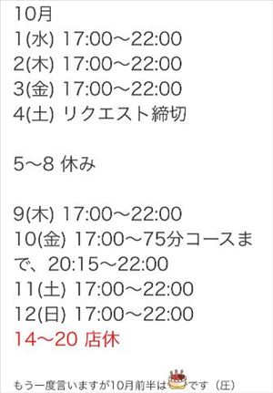 10月21日 (火) 17:00 ~ 22:00
