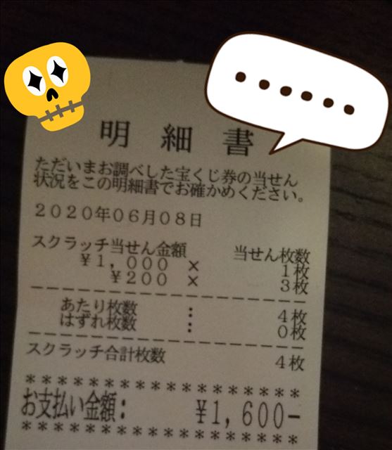 つばさです 本日は17時上がりでのお仕事でした 今日は個人的に暇だったぁ明日も17時までいるので明日は忙しいと良いな   ところで今日の帰りなんですが いつもと変わらない道を何も考えずに歩いてて。 普段は何とも思わない宝くじ売り場がやたら目について気になったんです。 宝くじとか買ったりしないんですが、なんというか直感が働いたんですね  こういう時って買ったほうが良いって聞くのでスクラッチカード買ったんです10枚2000円の。   結果なんですが    1600円当たって。     \結 果 赤 字 !!/    直感とは何だ(哲学)  そんな帰りでしたまた明日お会いしましょう