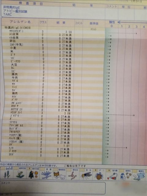 月イチの女性のお休み中のつばさです こんにちは   最近、花粉症の症状(目の痒み)が出なくなってきて そろそろ私の中で花粉症の終わりを感じつつあります  数年前から花粉のシーズンに目の痒みが出るようになって これは花粉症かもしれない…けど認めたら負けだ! みたいな気持ちで毎年過ごしてたんですが  せっかくなので今年の健康診断で人生初のアレルギー検査をしてみたんですね。  \どどん!!/    OH…KAFUNSHO!! この結果でもう花粉症を受け入れることにしました。   そして自覚症状のあったハウスダストとダニ。 掃除の行き届いてないエリアに行くといつも鼻がグジュグシュ、くしゃみが止まらない理由もこれで納得。  今回アレルギー検査を初めてやってみたけど面白いです もっと細かいやつもやってみたくなりました。